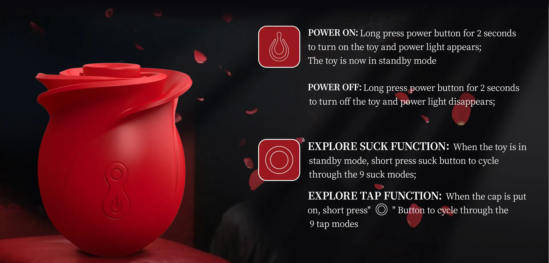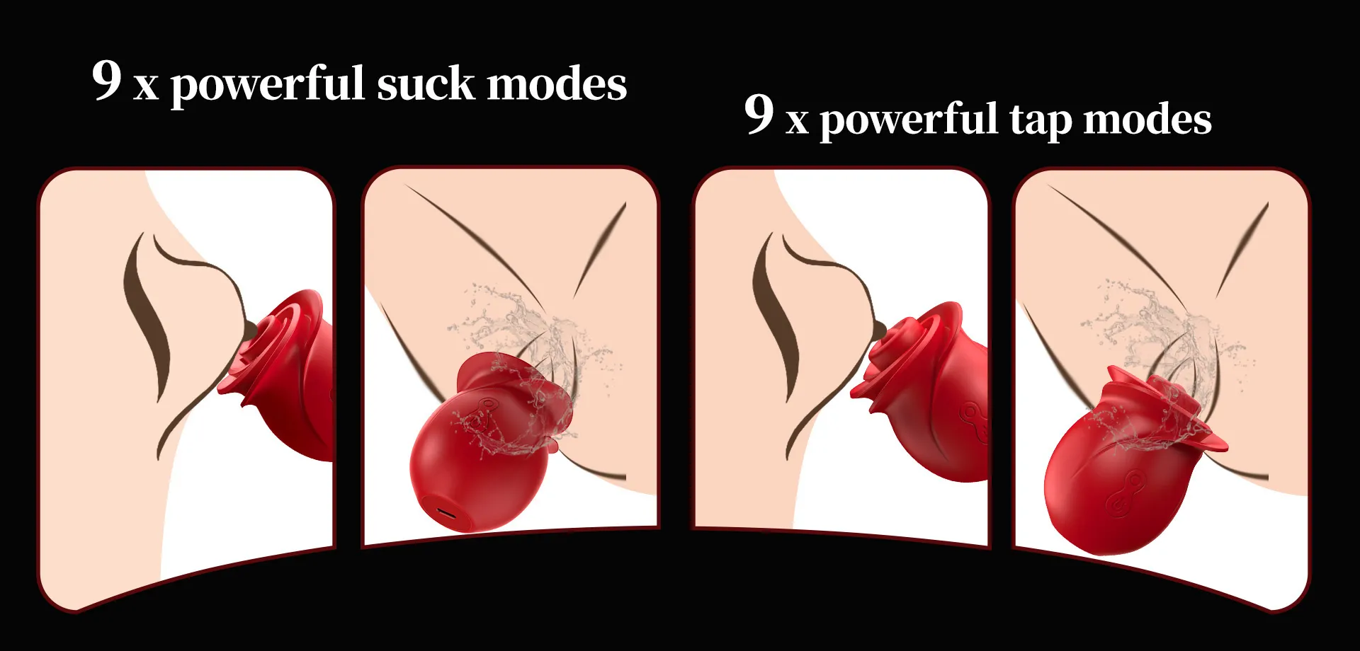 Unleash wild pleasure with our Rose Vibrator! Featuring sensual spiral petals&9 explosive suction modes-1-5 intensify your ecstasy, while 6-9 surprise with thrilling patterns. Silky, super quiet, powerful&irresistibly teasing-bloom into mind-blowing orgasms!