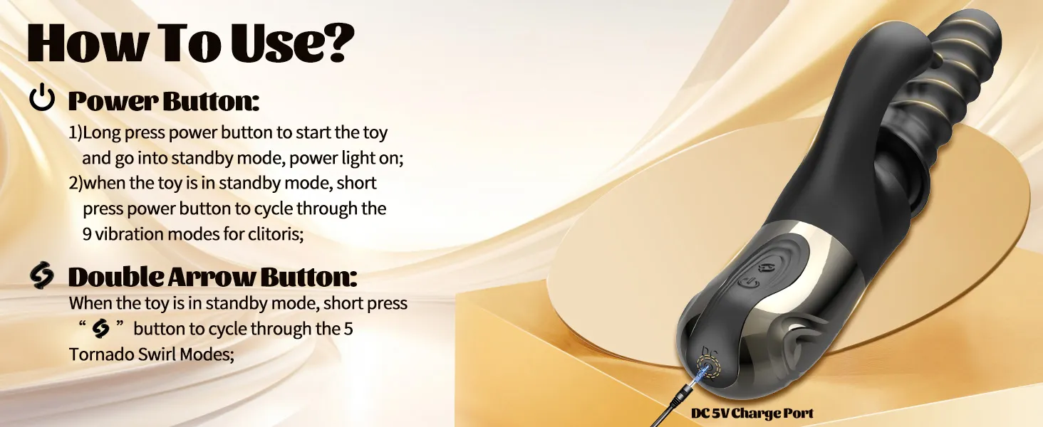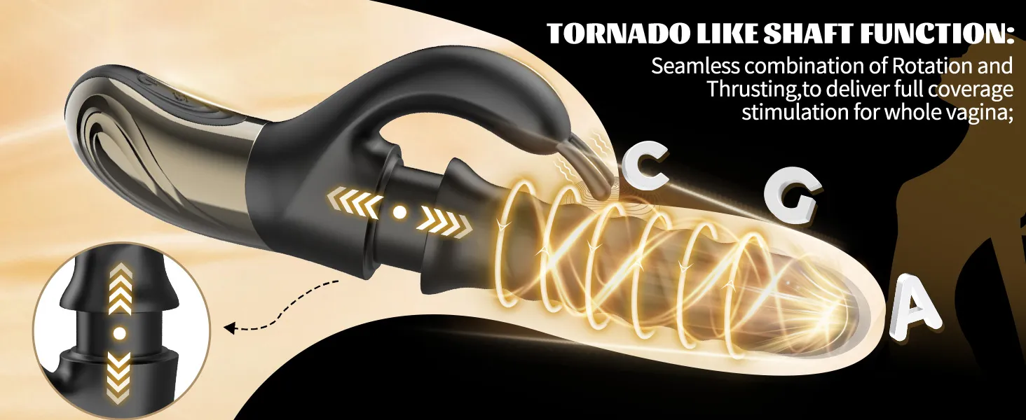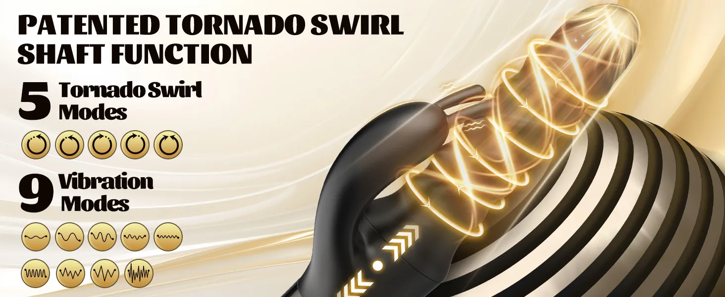 Step into a new era of sensation with our revolutionary, patented Tornado Rabbit. Unlike traditional rabbit vibrators that only vibrate or thrust, this breakthrough design combines two intense motions at once – a 360° dual-direction rotation and rhythmic up-and-down thrusting. The result? A swirling, tornado-like movement that envelops you in deep, all-around stimulation from every angle.